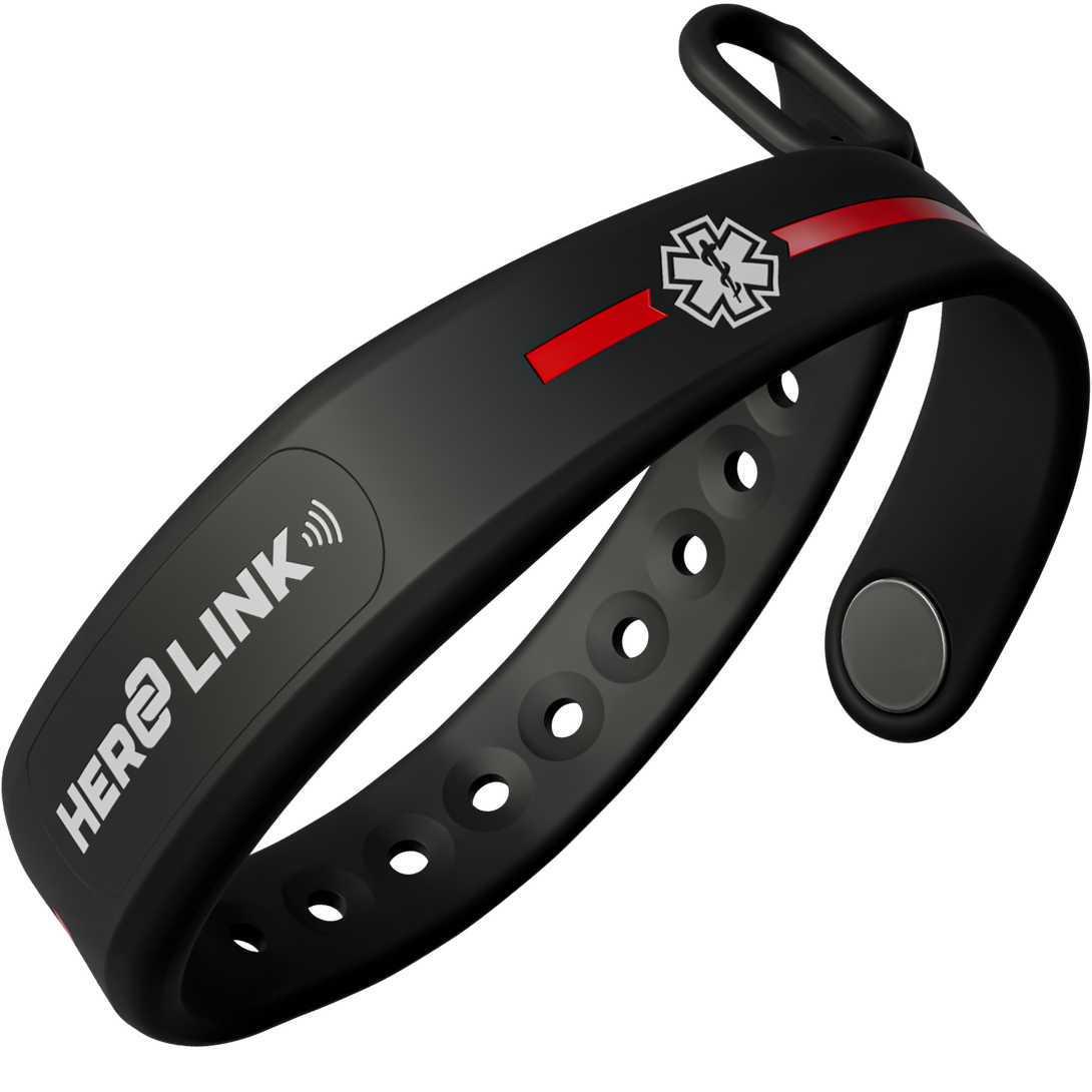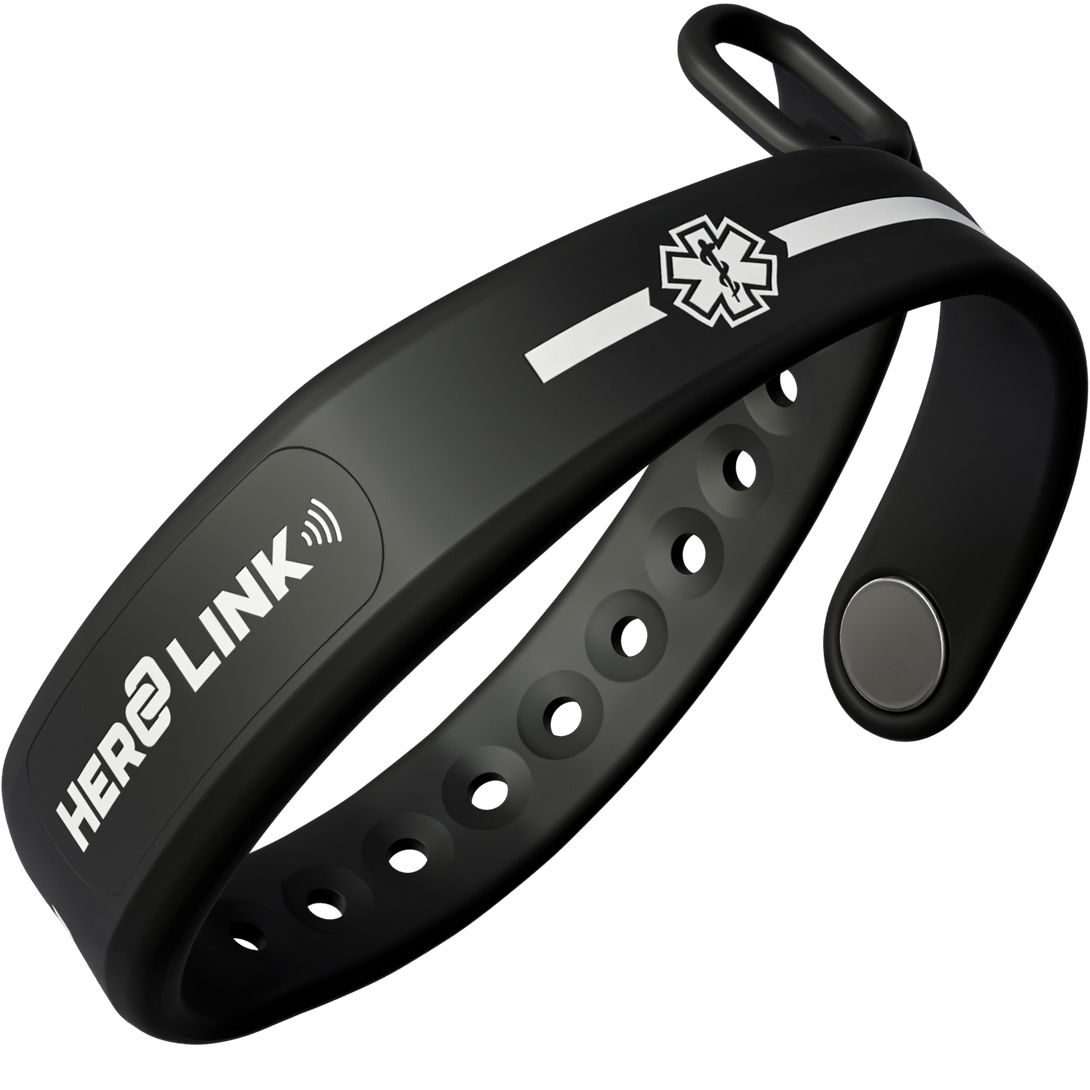 Wear your lifeline on your wrist—ready for action wherever you go. The Hero Link® adjustable silicone band combines rugged durability with instant, tap-and-go emergency access to your vital information.