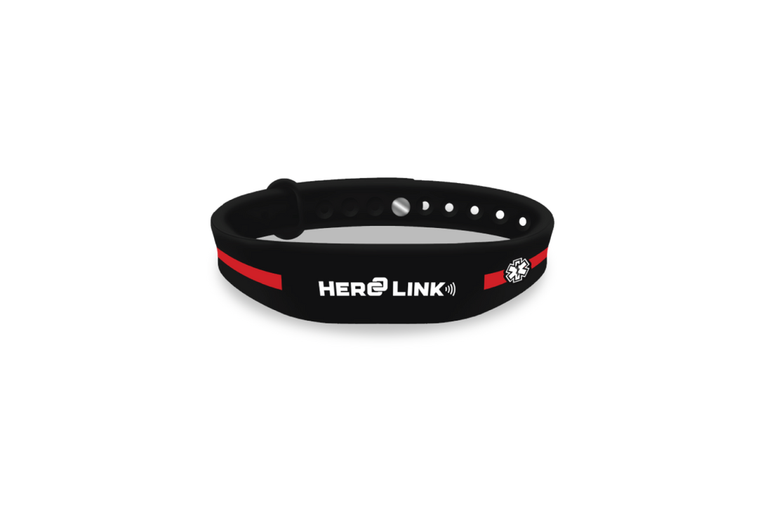 Wear your lifeline on your wrist—ready for action wherever you go. The Hero Link® adjustable silicone band combines rugged durability with instant, tap-and-go emergency access to your vital information.