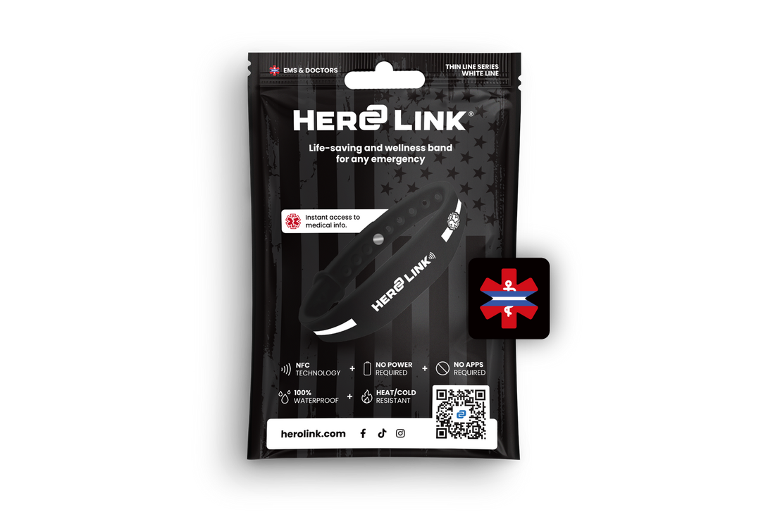 In an emergency, a simple tap from any NFC-enabled smartphone connects first responders to your secure Hero Link® profile—providing instant access to your medical details, emergency contacts, and other critical information when seconds matter most.
